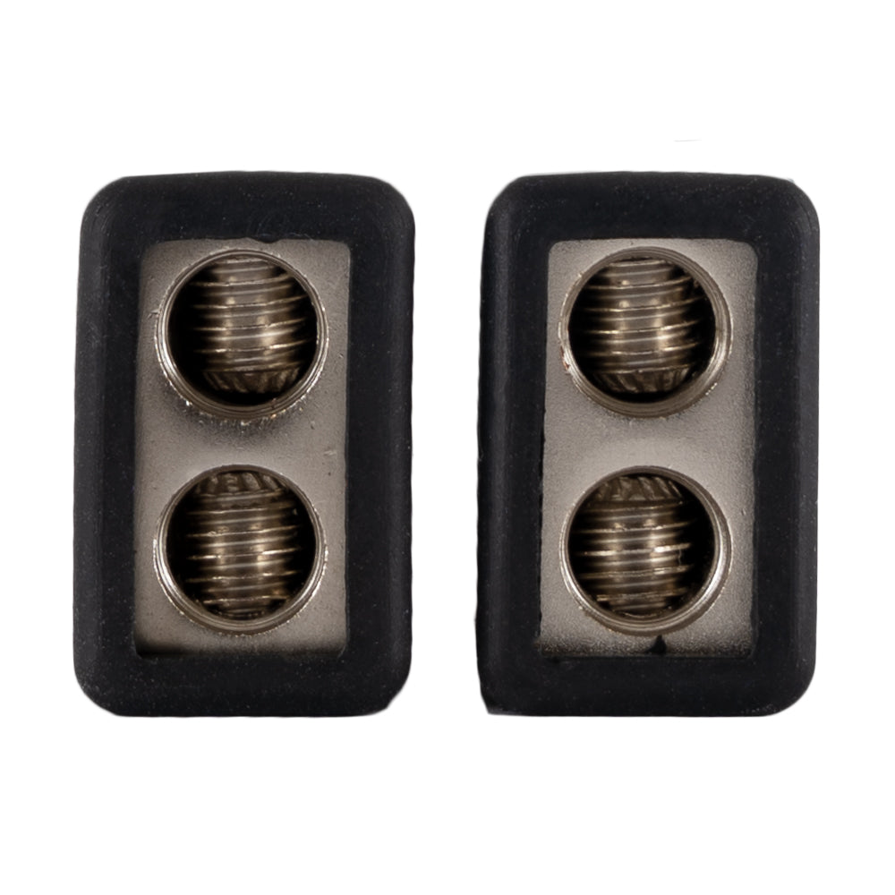 TB1082 to para podwójnych wejść dla przewodów 10 mm², które umożliwiają podłączenie dwóch przewodów 10 mm² do jednego zacisku 10 mm². Idealne do stosowania we wzmacniaczach z pojedynczym wejściem/wyjściem, gdzie potrzebna jest większa moc lub po prostu trzeba podłączyć więcej przewodów równolegle.