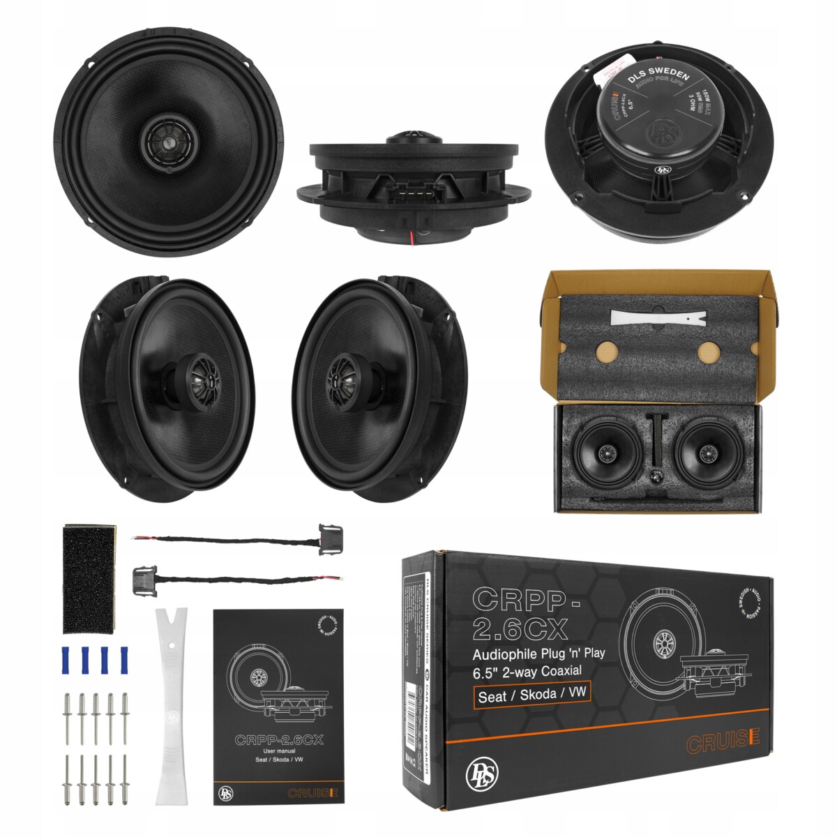 DLS Cruise CRPP-2.6CX zostały starannie zaprojektowane, aby idealnie współgrać z wnętrzem samochodów Seat, Skoda i Volkswagen. Oferują nie tylko doskonałe brzmienie, ale także harmonijnie łączą się z estetyką i designem tych marek. To nie tylko głośniki, to element, który podkreśli indywidualność i charakter Twojego samochodu.