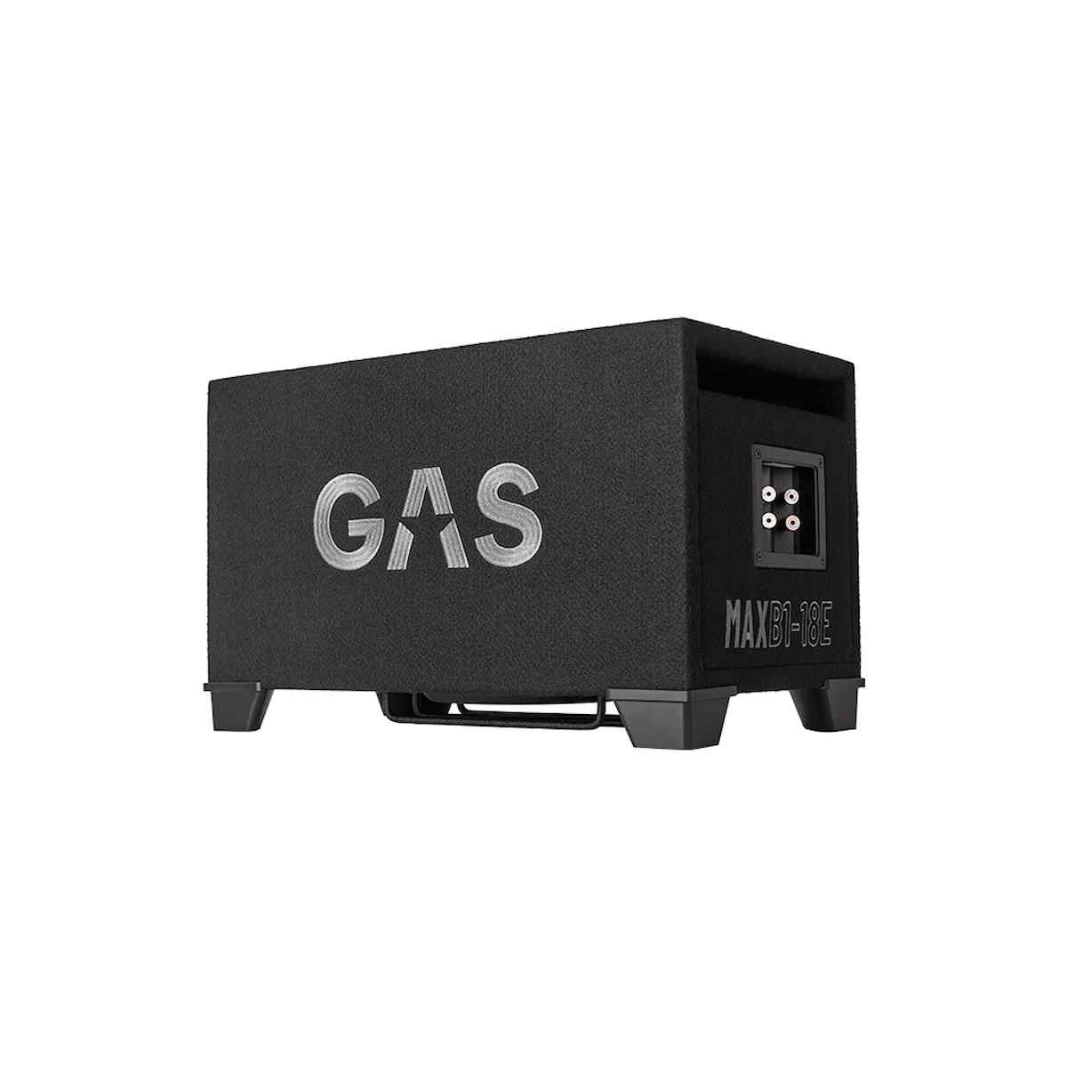 Obudowa GAS MAX B1-18E wykonana jest z grubego MDF z dwuwarstwowymi ściankami frontowymi i metalowymi kratkami A-star, które zapewniają ochronę i atrakcyjny wygląd. Czarne, chromowane zaciski wtykowe umożliwiają łatwe przełączanie impedancji 1/2 + 2/4 Ω, a dołączone przewody i nóżki pozwalają precyzyjnie ustawić subwoofer.