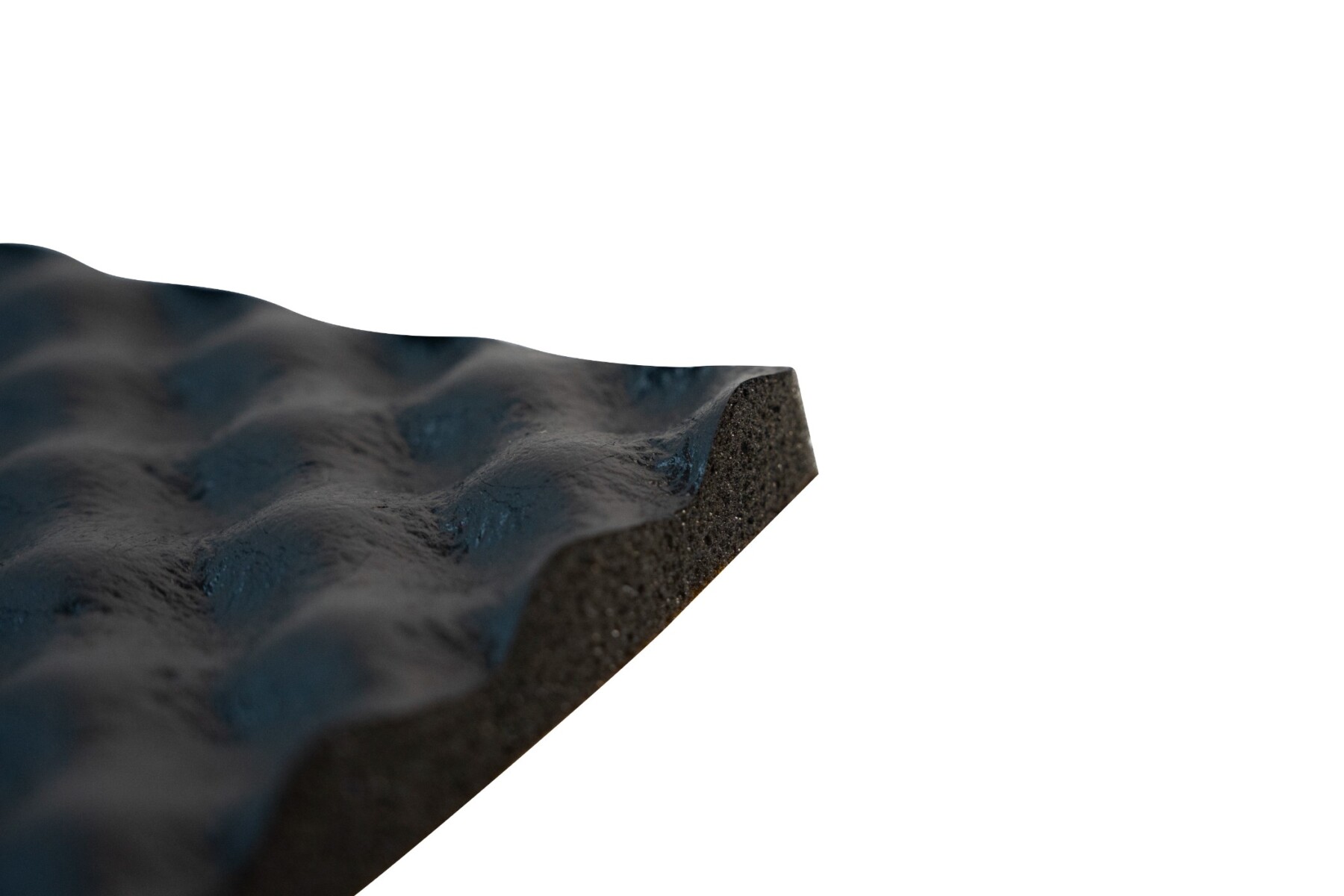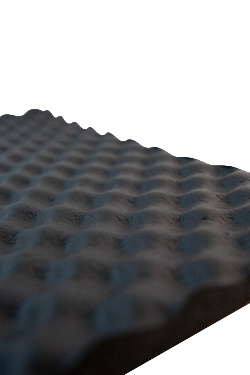 • ➡️ Profil “fala” zwiększa objętość aktywnej warstwy dźwiękochłonnej, co poprawia absorpcję dźwięku w porównaniu do materiałów o płaskich powierzchniach. Zewnętrzna powłoka chroni również przed wilgocią.